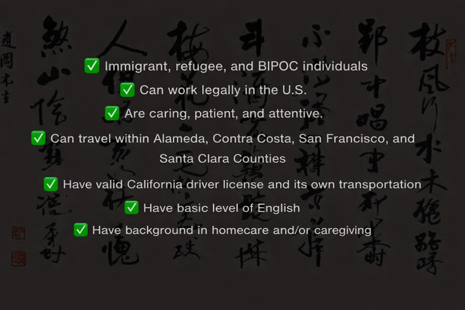 We aim to train “Angels” to provide bilingual, culturally responsive care to underserved monolingual communities. We tap the shadow workforce of bilingual immigrants, refugees, and students with caregiving or medical backgrounds from their homelands, and train them to provide culturally-competent care with respect and dignity to diverse Bay Area families.